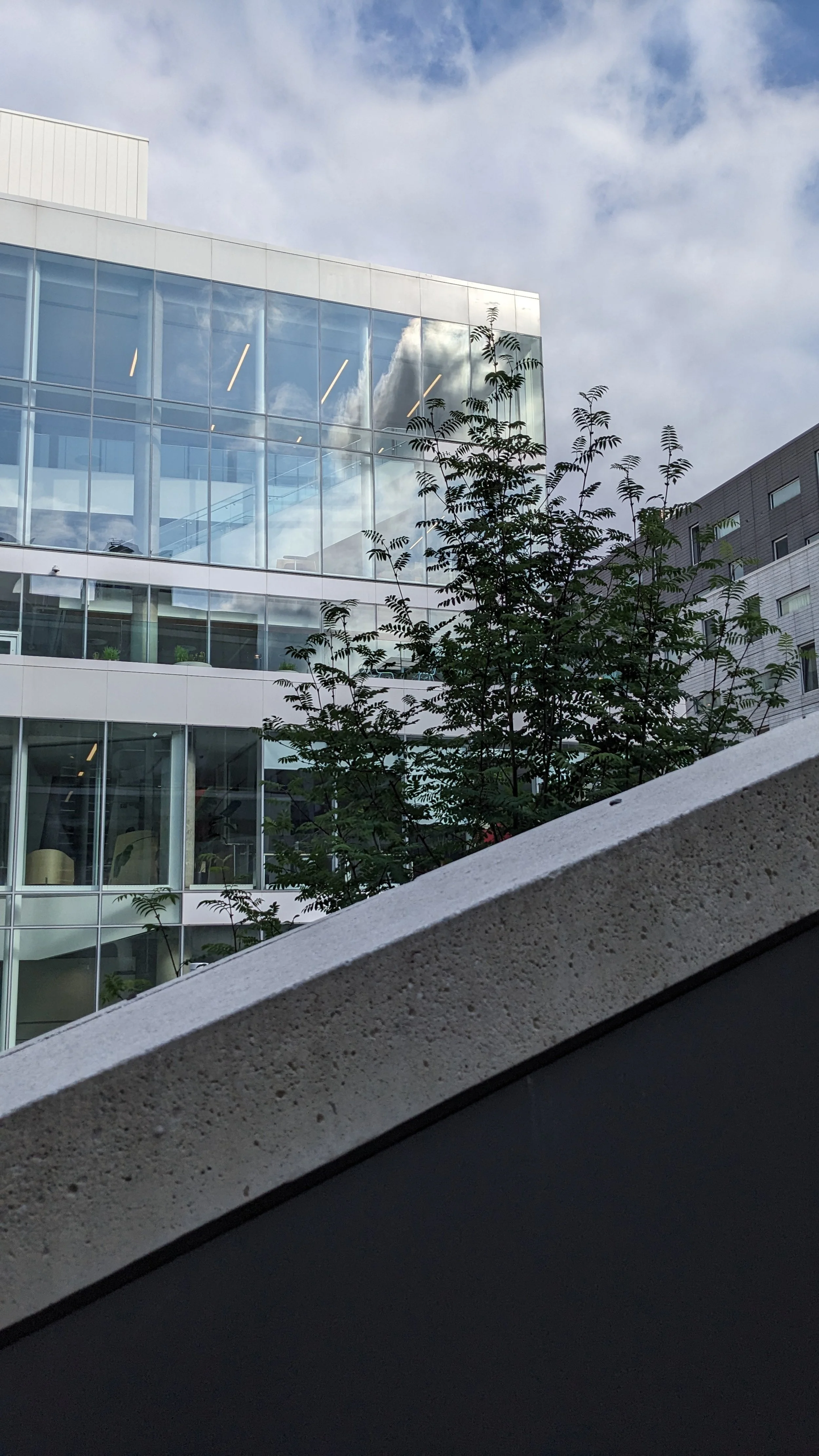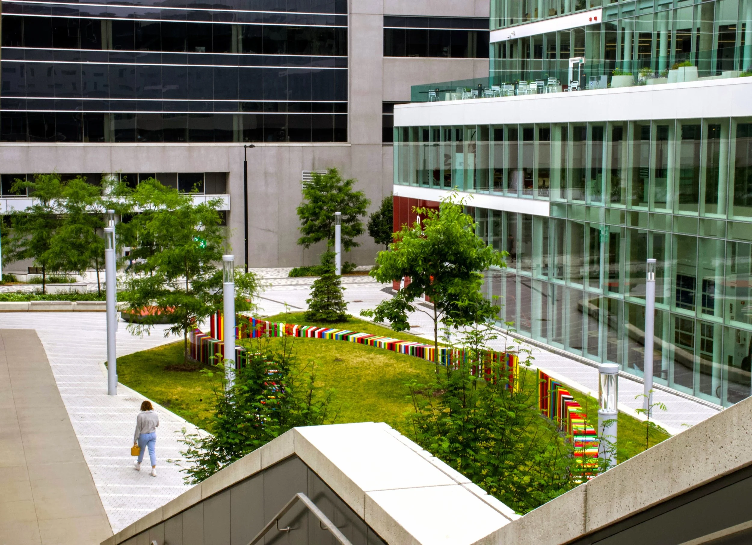 “Ce petit îlot de nature formée entre les bâtiments A et D-E vient guérir et panser ce quartier qui compte les plus hauts gratte-ciels de la ville. A la manière d'un cataplasme, ce lieu apaise et permet de venir y dîner ou encore s'y promener.”
