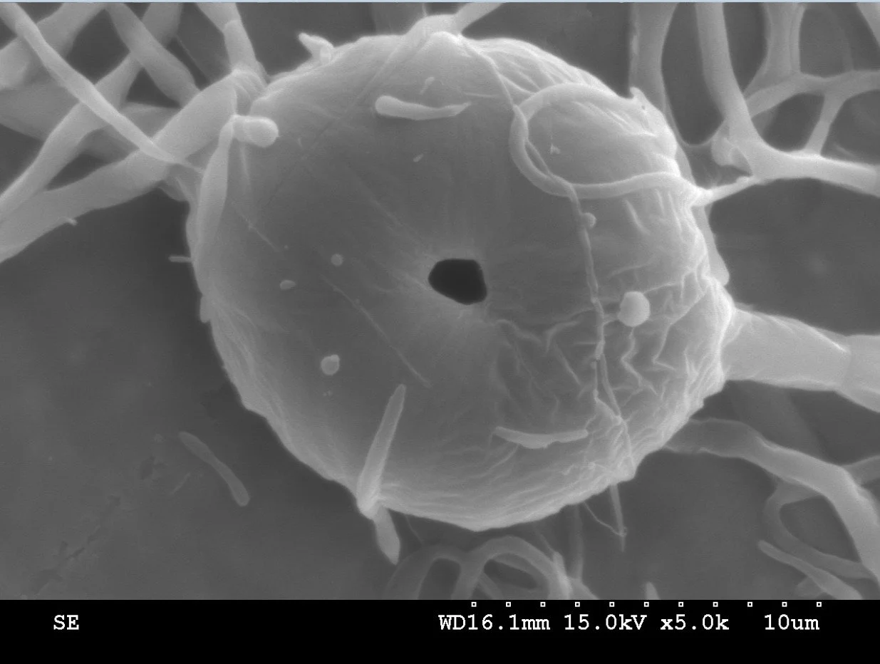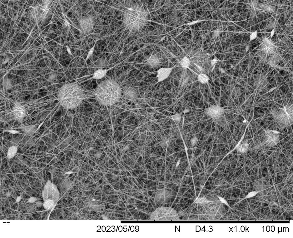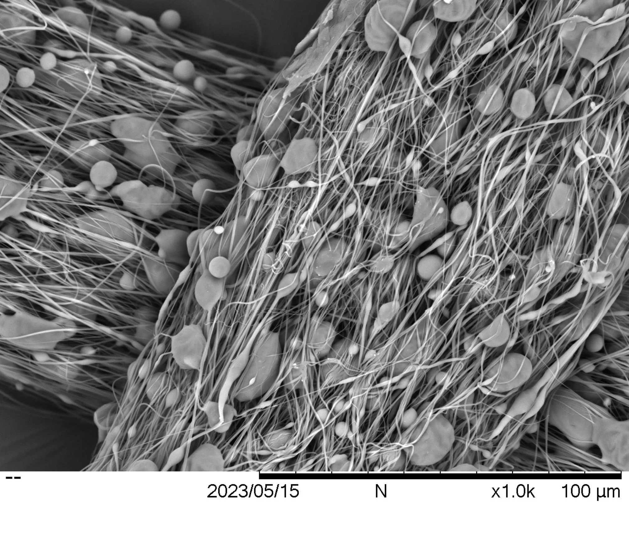“Ce poumon, niché au cœur d'un réseau de fibres, a été créé grâce au procédé de Blow Spinning, développé au sein du laboratoire PolymerETS. Cette image confère une impression de vie à notre travail. Certains pourront presque l'entendre palpiter !”