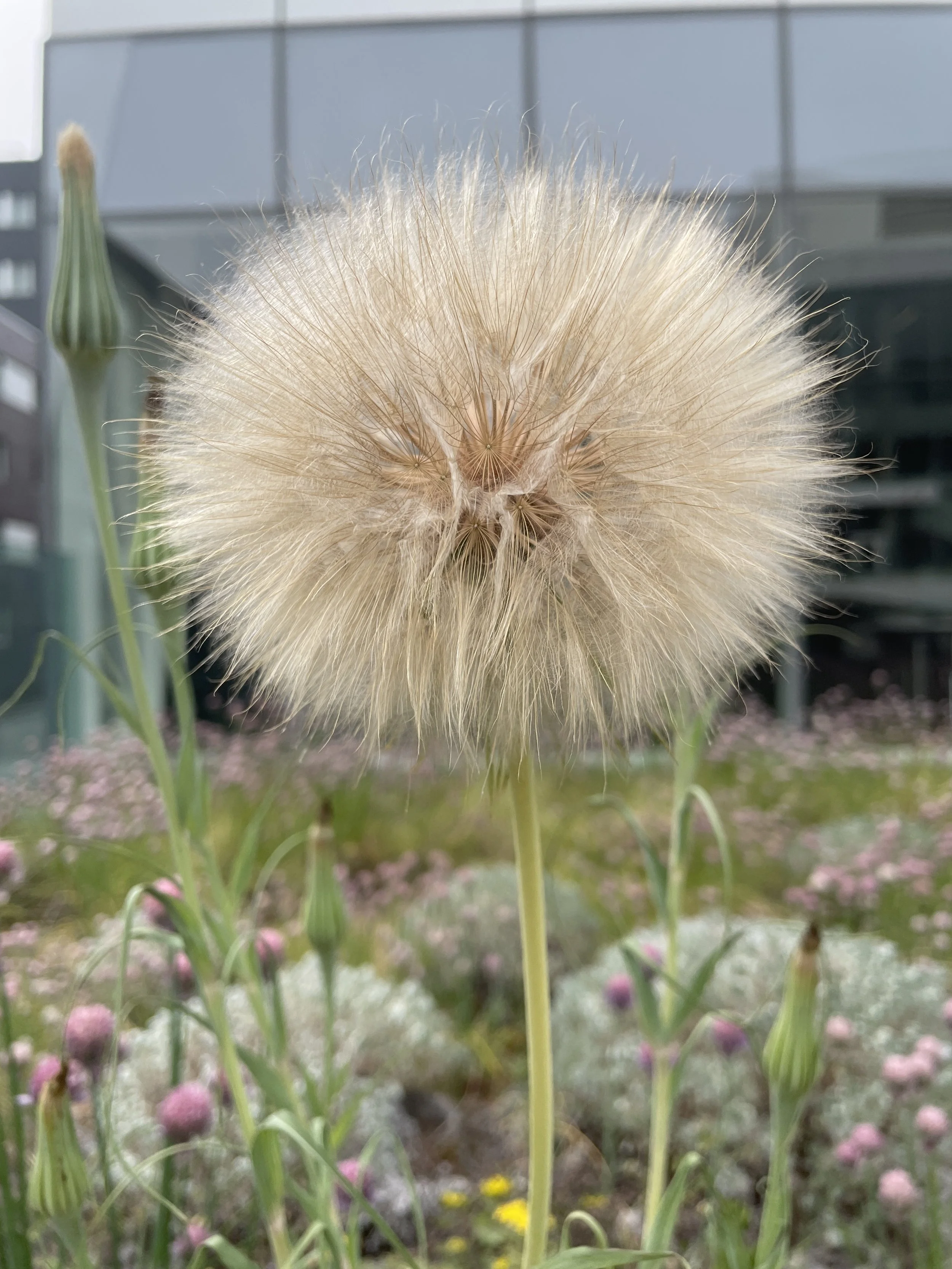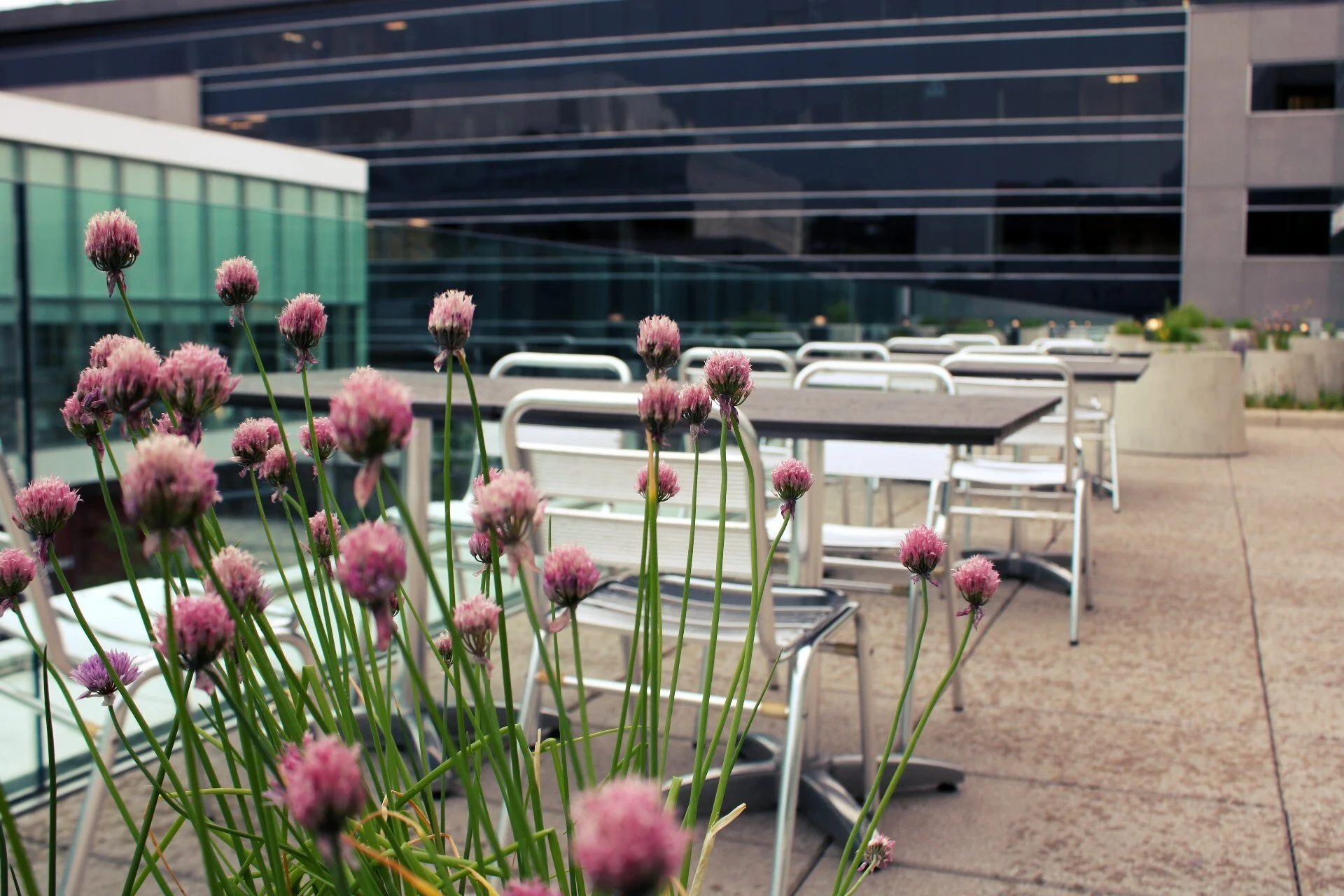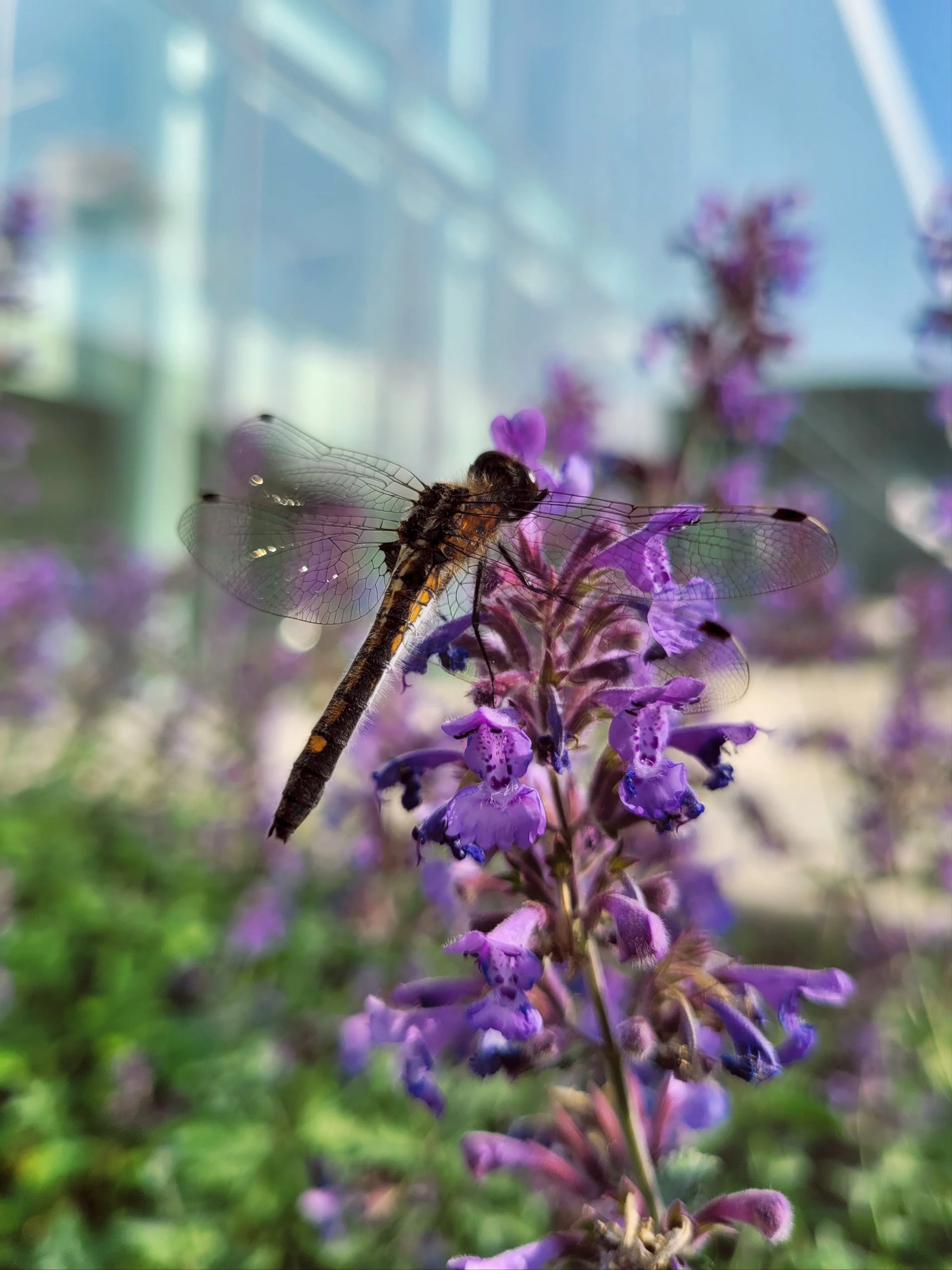 “Abeille butinant parmi les fleurs de sauge, sur la terrasse du bâtiment D".”